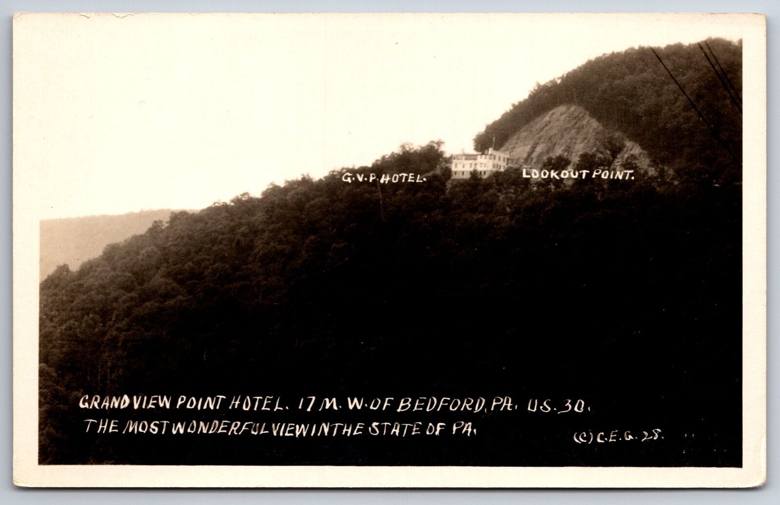 Bedford-Schellsburg~Grand View Point Hotel From Below~Most Wonderful View RPPC