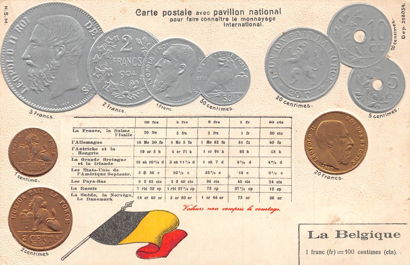 Belgium Flag Coins Exchange Table embossed coinage postcard C314 This item is listed via xdm.it software