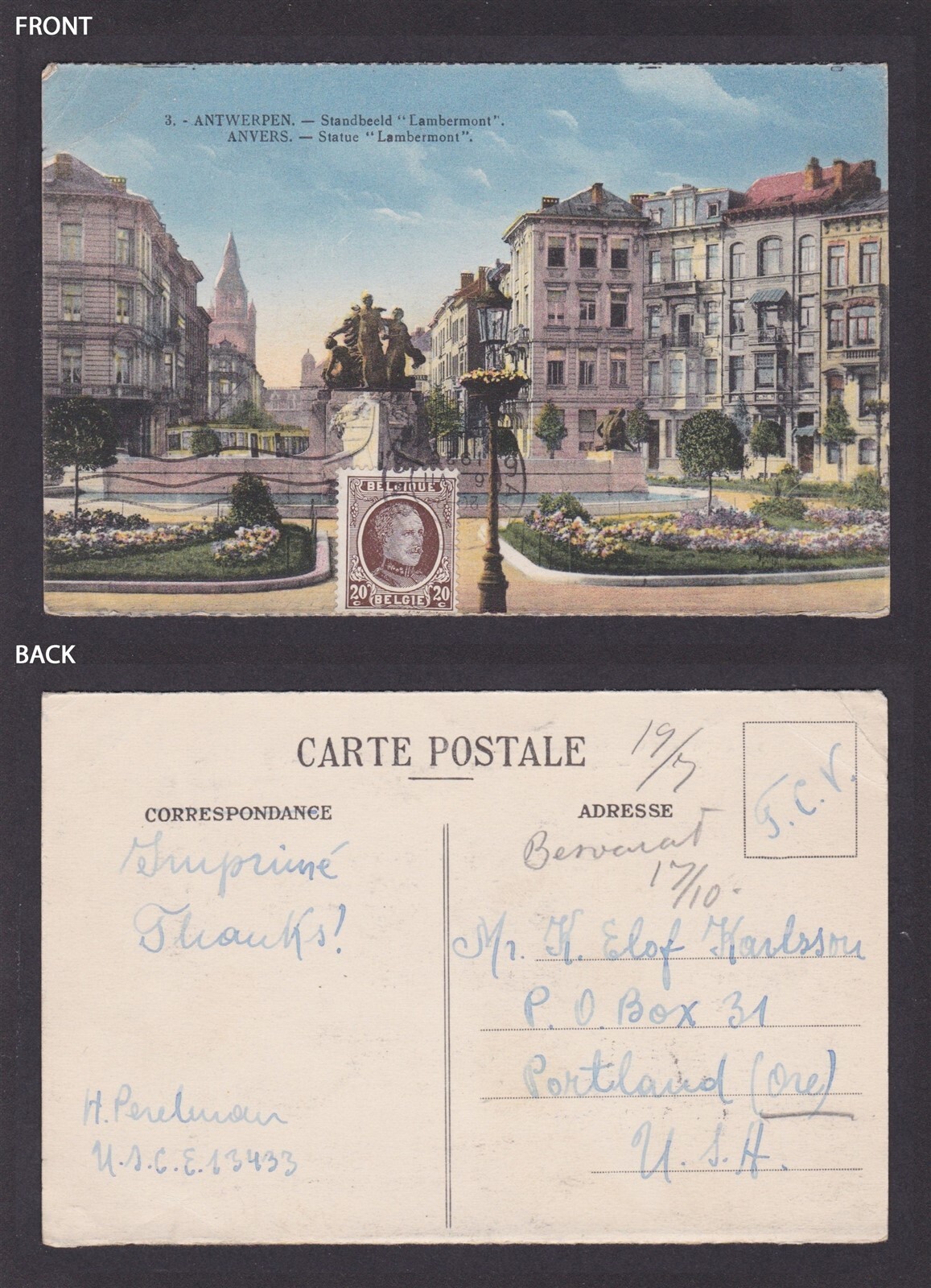 BELGIUM, Postcard, Antwerp City, Statue "Lambermont" Please, look at the pictures!