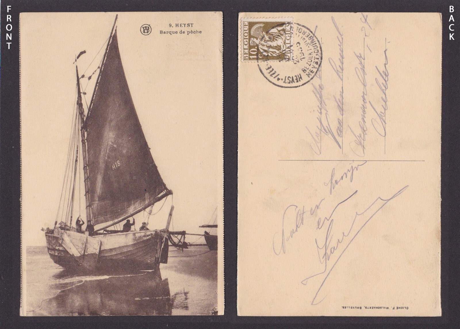 BELGIUM, Vintage postcard, Heyst, Barque de pêche