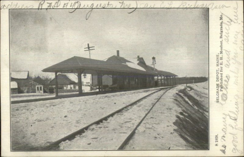 Belgrade ME RR Train Depot Station c1905 Postcard
