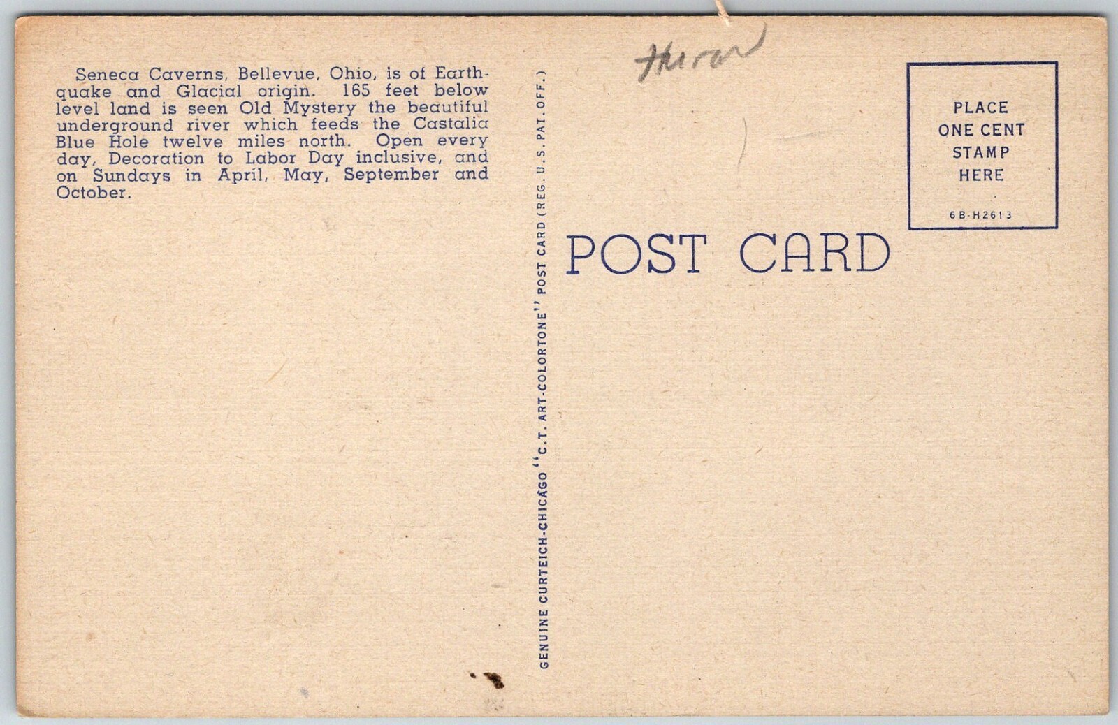 Bellevue Ohio 1940s Postcard Old Mystery River Seneca Caverns