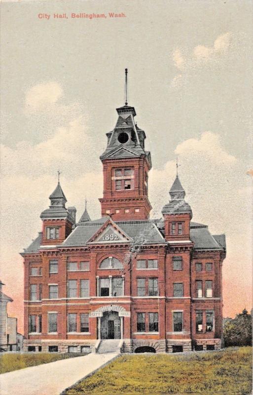 BELLINGHAM WASHINGTON CITY HALL POSTCARD 1911 PSTMK