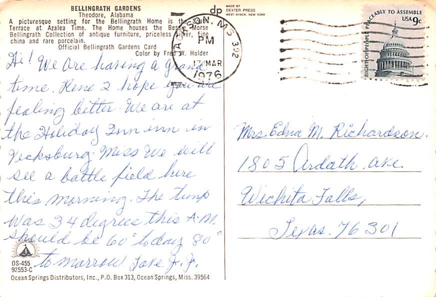 Bellingrath Gardens - Theodore, Alabama Grade: 1 Category: Continental Size Postcard, Approx 4 in x 6 in (10 cm x 15.25 cm) Product Size: Continental size: 4X6 inches (10.5 cm x 15 cm) Grading Scale: Grade 1 = ... Read More