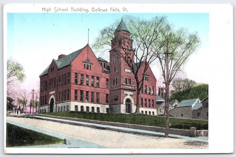 Bellows Falls VT High School Building c1910 Postcard Vermont Architecture