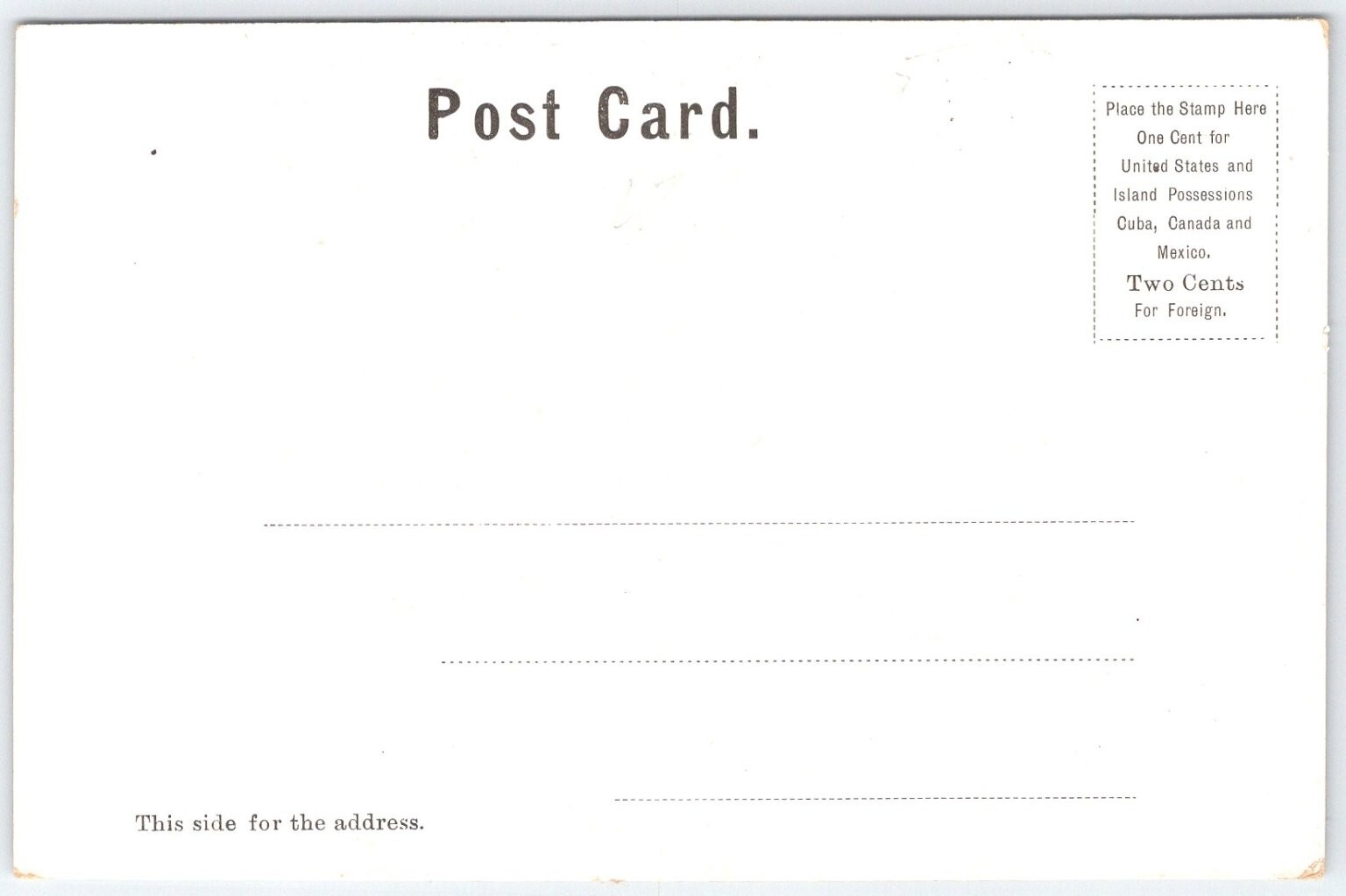 This captivating vintage postcard features the impressive High School Building in Bellows Falls, Vermont. The detailed image showcases the grand red brick architecture of the school, characterized by its prominent central tower with a distinctive conical roof, multiple arched entryways, and rows of windows. The scene captures the building nestled on a slight incline, with lush trees adorning the landscape, reflecting the classic charm of early 20th-century American townscapes.This postcard is a wonderful example of early 20th-century printing techniques, likely featuring a hand-colored or chromolithographic process that brings out the architectural details and natural surroundings with vibrant, yet subtle, hues. The reverse side is a classic divided back, indicating its production from approximately 1907 onwards, and specifies postage rates for both domestic and international mail. This piece offers a glimpse into the historical educational infrastructure and community pride of Bellows Falls, Vermont, making it a valuable addition for collectors of Vermontiana, architectural history, or vintage school memorabilia.