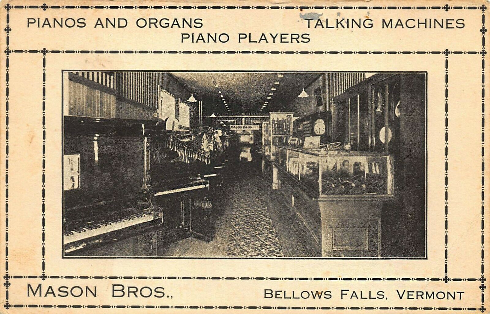Bellows Falls VT Mason Bros. Pianos & Organs Talking Machine Piano Players PC
