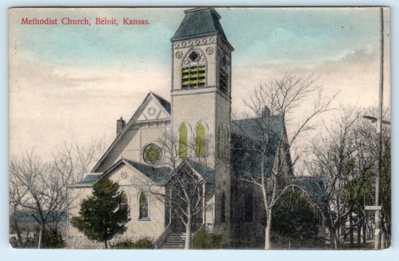 BELOIT, Kansas KS ~ Handcolored METHODIST CHURCH Mitchell County 1911 Postcard