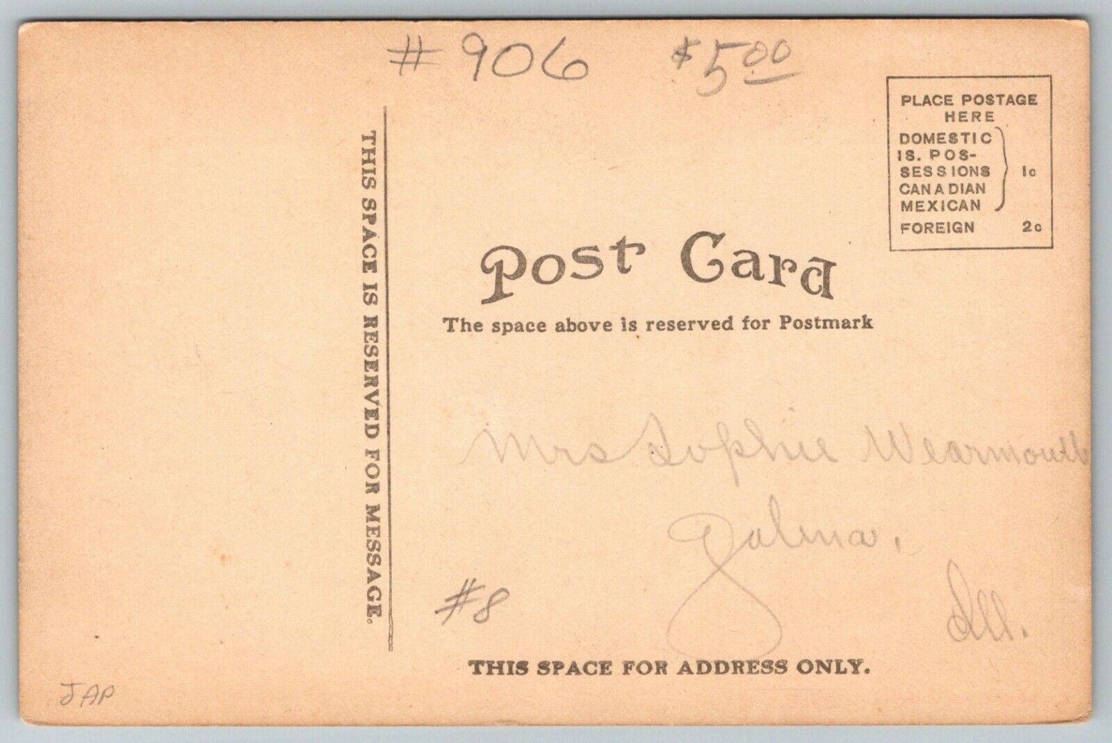 Using the Hip photo magnifier, please examine photos carefully, both front and back, for flaws. The back will sometimes reveal nicks or bends that you cannot see from the front. Double-click the image for super size photo. Colored lines are from the scanner and are not on the postcard