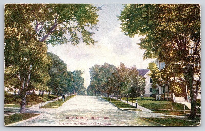 Beloit Wisconsin~Bluff St View~Residences~Sidewalk~Lawns~Porch~c1910 Postcard