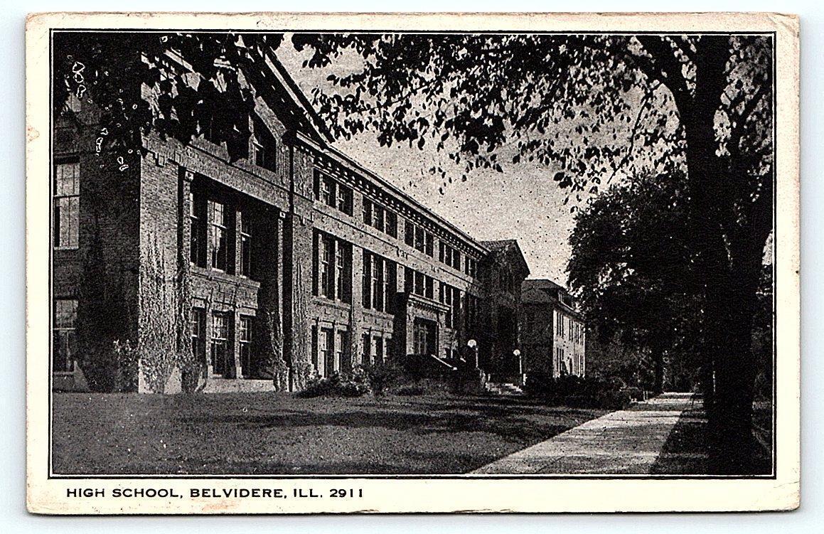 BELVIDERE, IL Illinois ~ 1923 ~ HIGH SCHOOL ~ Boone County Postcard