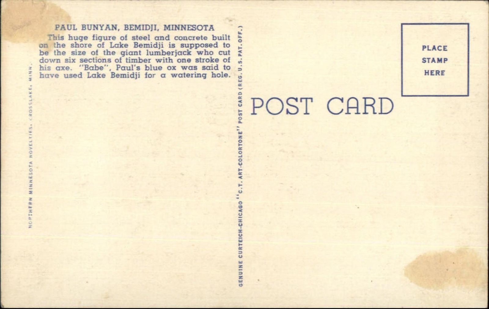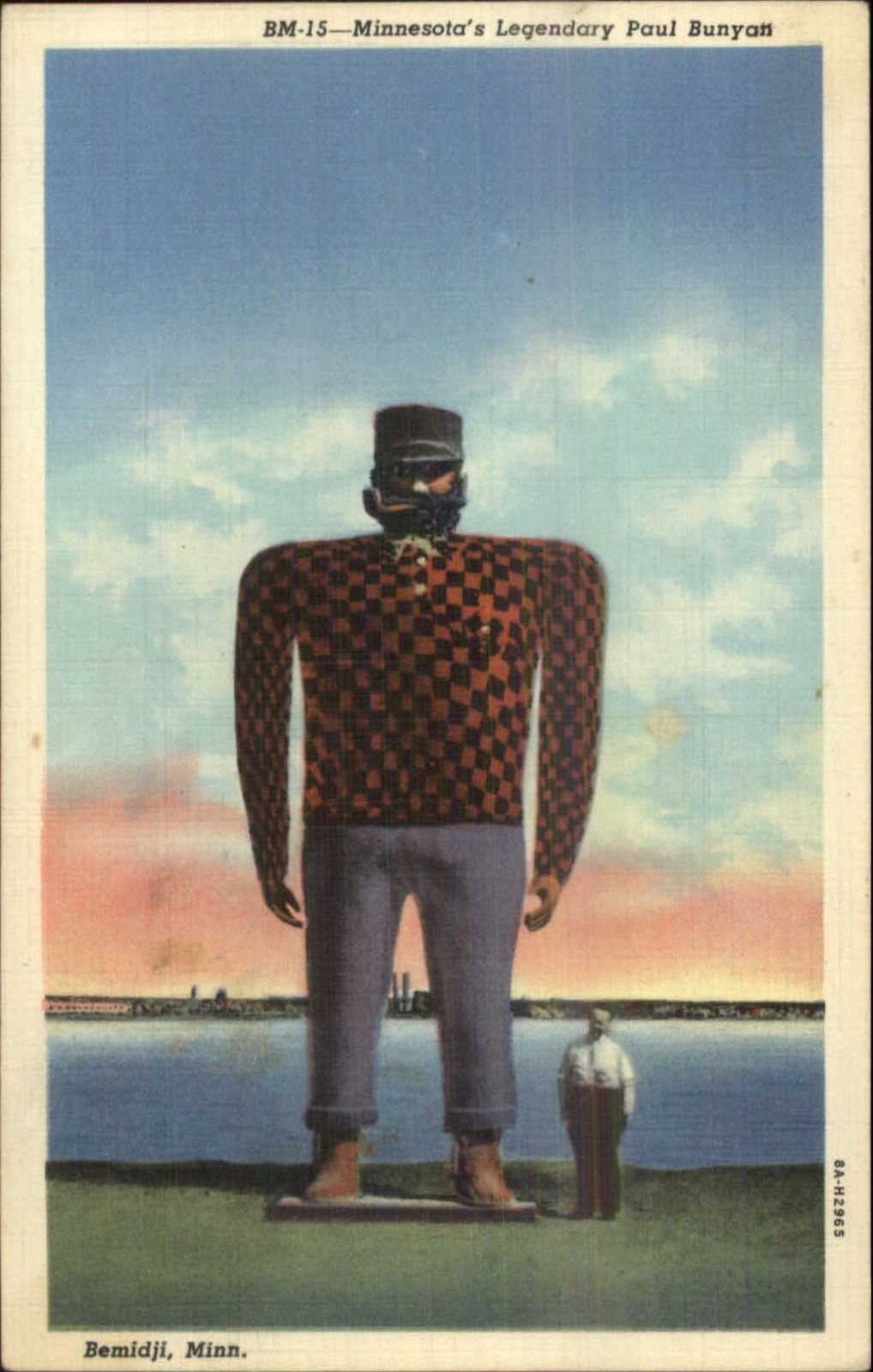 Bemidji MN Giant Paul Bunyan Statue Roadside Linen Postcard