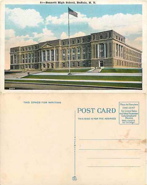 Bennett High School, Buffalo, New York, White Border, NY Postmark: Not Mailed Very Good: A little wear and some soil mainly on the back
