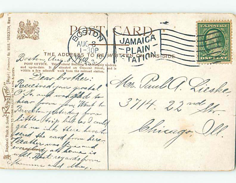 Bent Corner Divided Back POST OFFICE SCENE Brockton Massachusetts MA hs1805