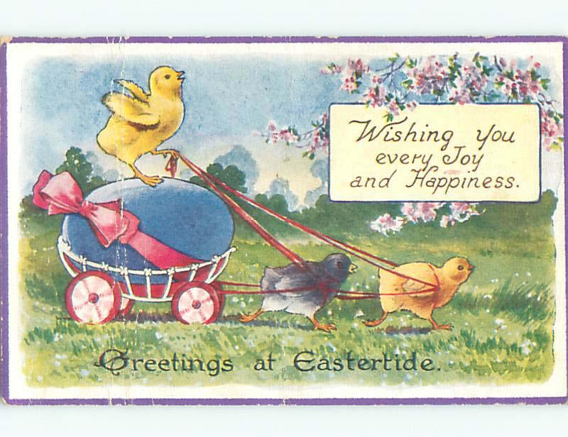 Bent Pre-Linen HUMANIZED CHICK DRIVING WAGON CARRYING EASTER EGG J2492