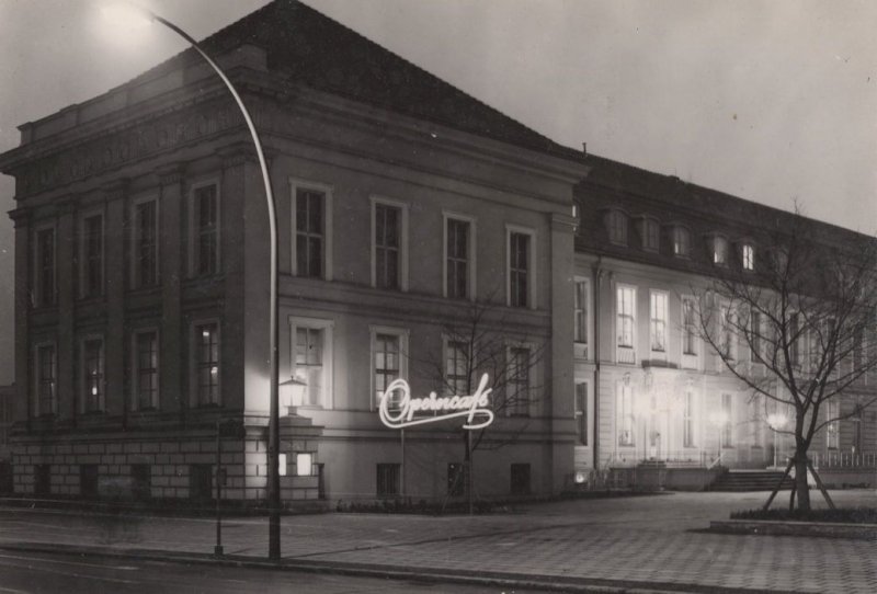 bg753 A vintage more rare postcard of the Berlin Operncafe showing it at night with its great illuminations as it was from the 1950s when published in near mint condition.