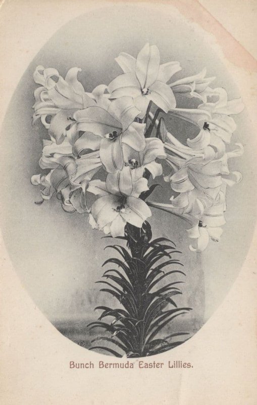 bg465 Antique Bermuda postcard of a bunch of Easter Lillies with small top right corner darkening or mild mark but otherwise great condition and unused too locally published in Bermuda around 110 years ago origin.