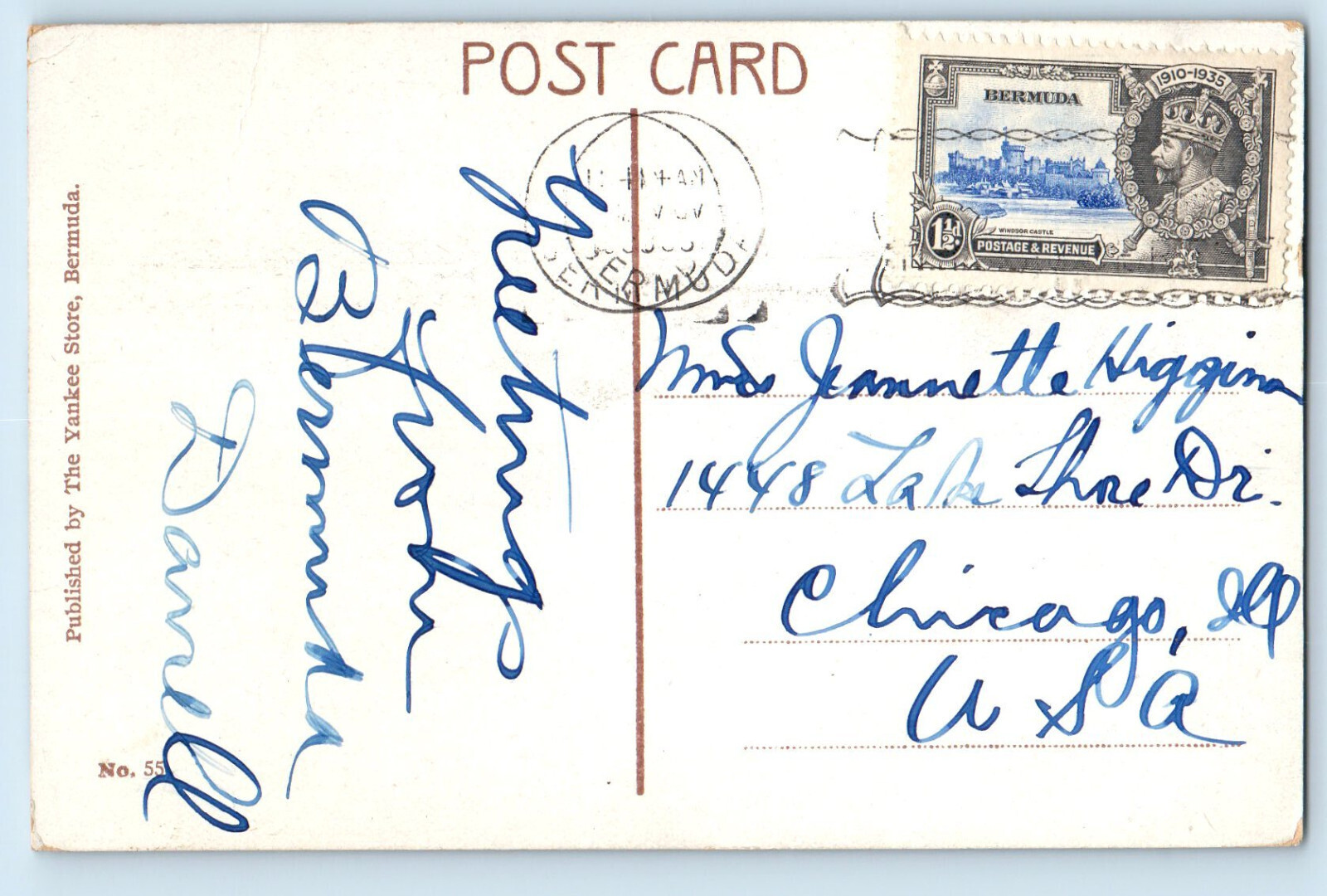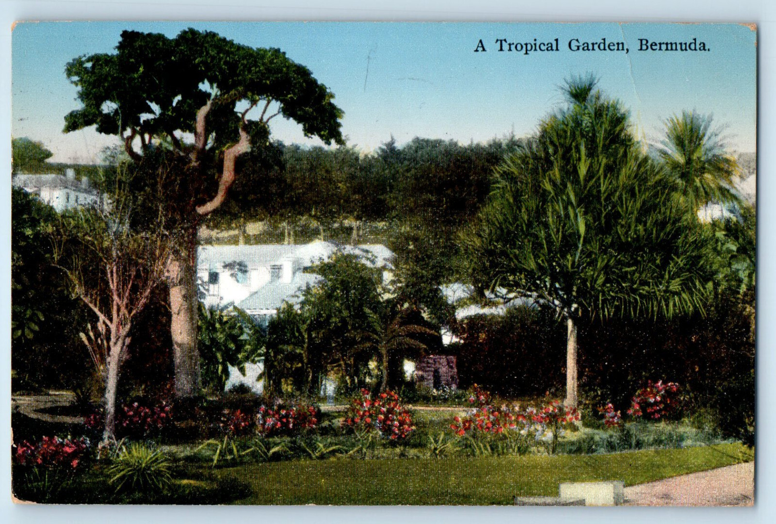 Bermuda Postcard A Tropical Garden and Building at Background c1910 Posted