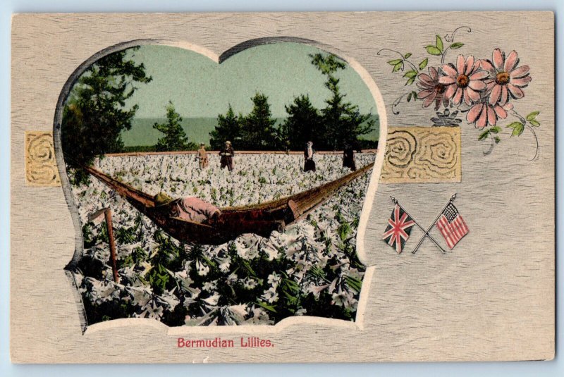 Bermuda Postcard Bermudian Lilies Flag Flower c1905 Antique Unposted