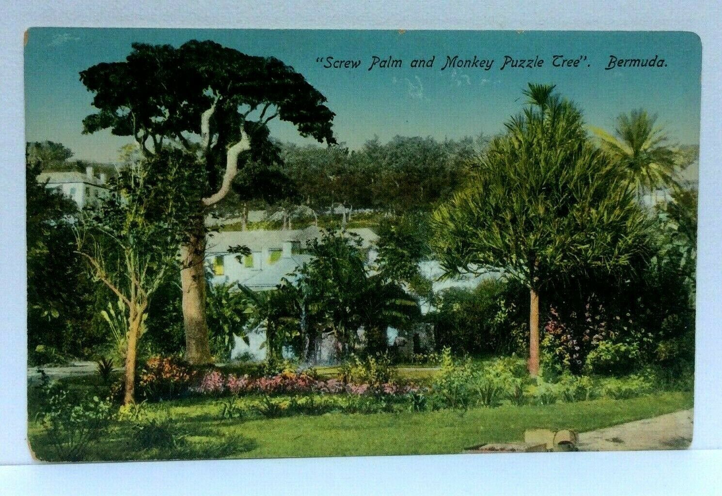 Bermuda Screw Palm And Monkey Puzzle Tree Vintage Postcard