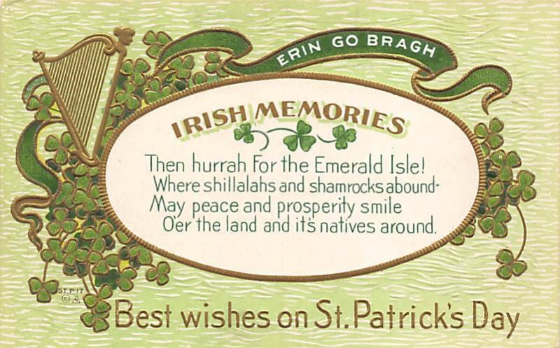 Best Wishes St. Patrick's Day Postcard Unused, Grade: 2, , Size: Regular size: Approx 3 1/2 X 5 1/2 inch (9 cm X 14 cm) Grading Scale: Grade 1 = Perfect corners Grade 2 = Very Minimal corner wear, no creases G ... Read More