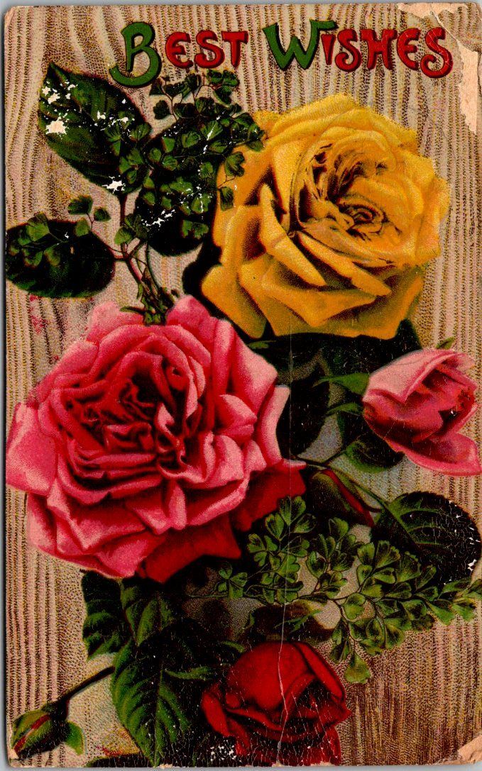 Best Wishes With Roses 1910