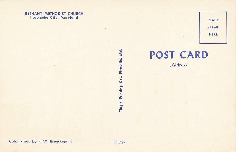 Bethany Methodist Church - Pocomake City, Maryland.Standard sized chrome card.