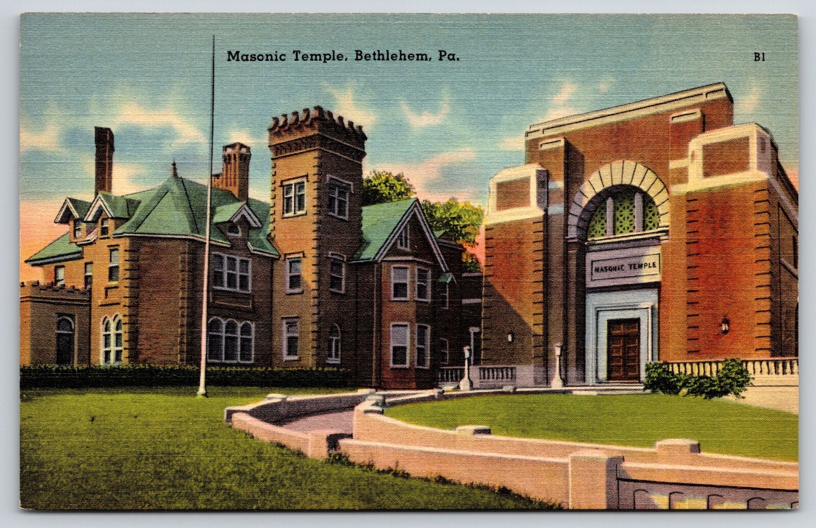 Bethlehem Pennsylvania~Masonic Temple Bldg~Tower~Castellated~Gothic~Linen PC