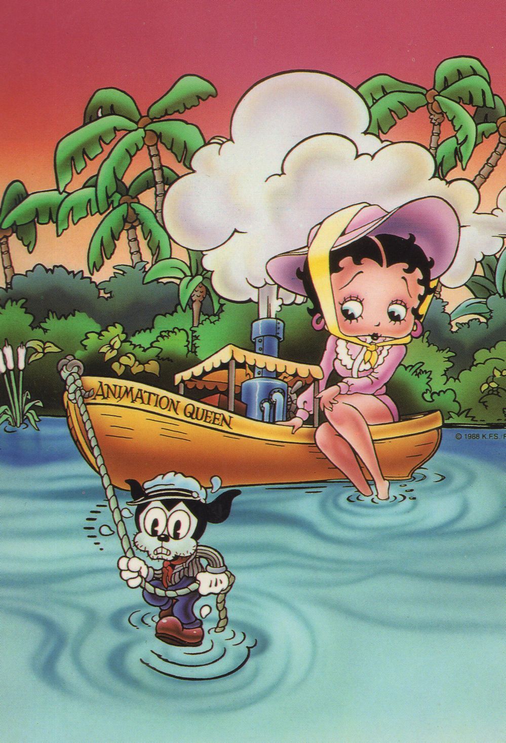 bg611 A rare undated but circa 25-30 years ago origin postcard imported from the USA when published of Betty Boop called Animation Queen in a boat of the same name unused and mint. Please see my many other rare & limited edition imported Betty Boop postcards from this same collector at my store.