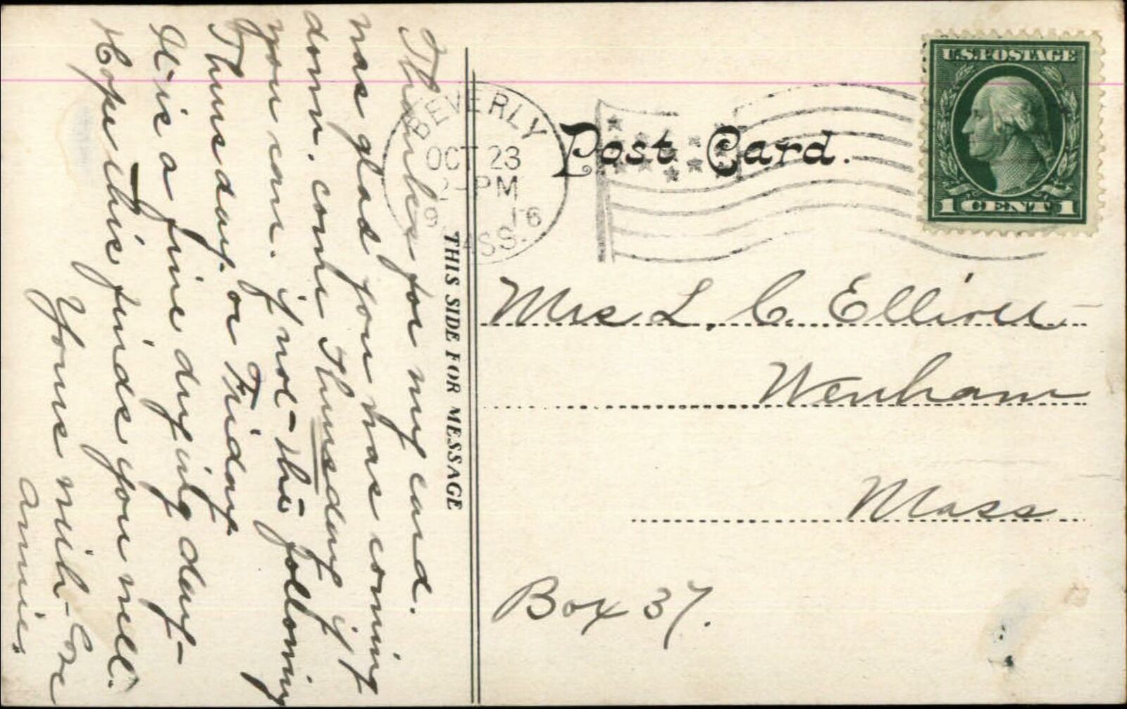 Beverly MA Cabot St. From Central 1916 Used Postcard