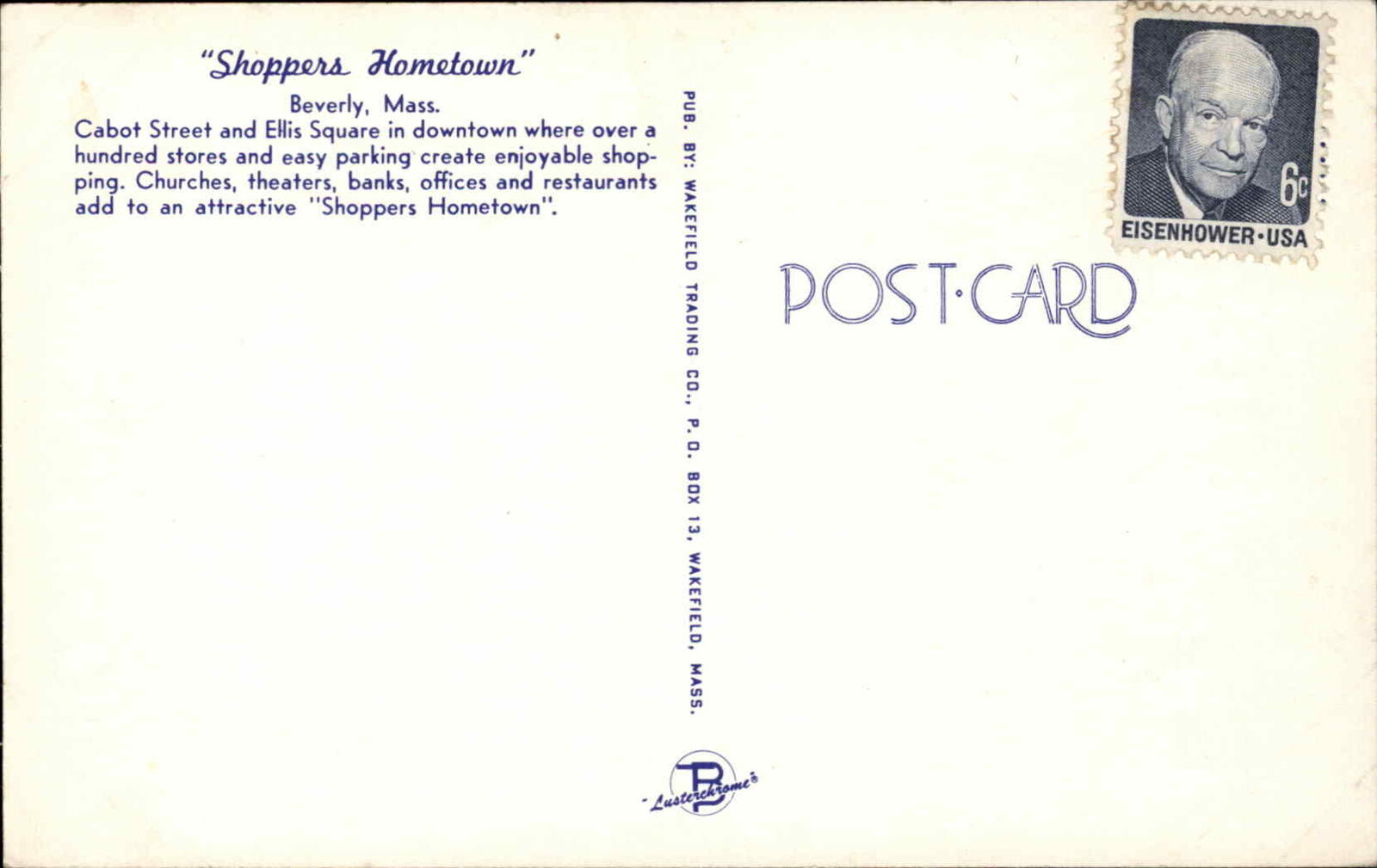Beverly Massachusetts MA Cabot Street Classic 1950s Cars Vintage Postcard