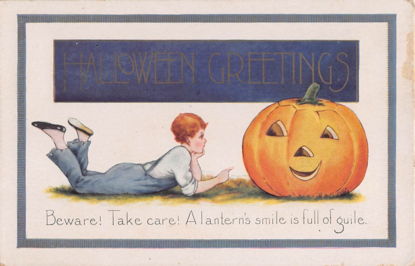 Beware Take care Whitney Made Halloween Postcard hol3006 All items are ORIGINAL, not reprints, .Please look at scans for postcard condition, my ideas might be different than yours Excellent - showing very little sign of wear , small corner bumpsVery good – may have worn corners or a small creaseGood—noticeable creases and or bad cornerFair -- very well worn scans will show any flaws with the backs showing any small defects.Questions always welcome All cards are send in a stiff envelope if you want more protection please let me know for a 2.00 upgrade.Due to easy digital reproduction, I can only offer a refund if item is significantly different from description. Powered by SixBit's eCommerce Solution