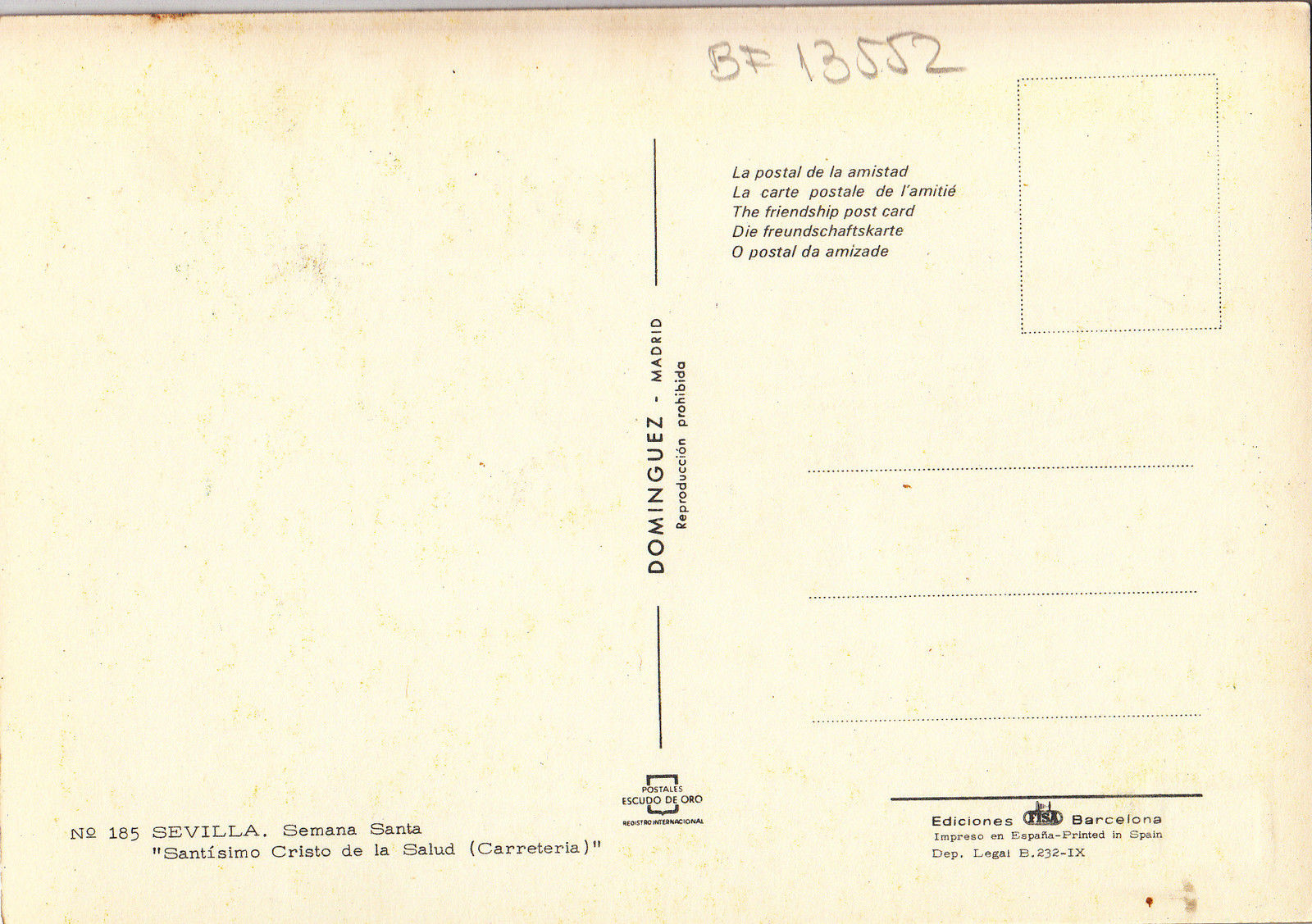 BF13552 sevilla semana santa santisimo cristo de la sal spain front/back image