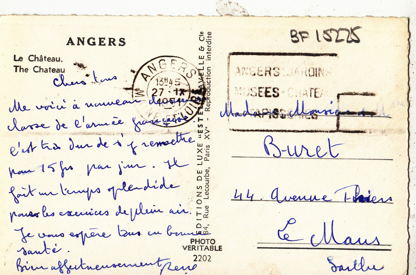 BF15225 angers le chateau france front/back image