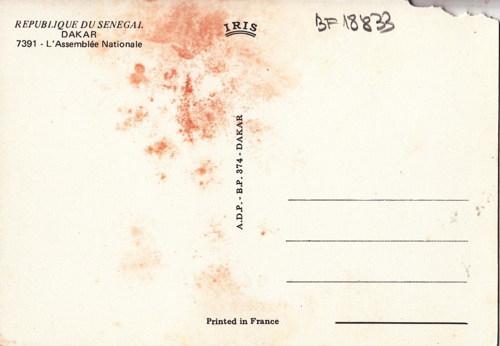 BF18833 dakar l assemblee nationale corner cut senegal front/back image