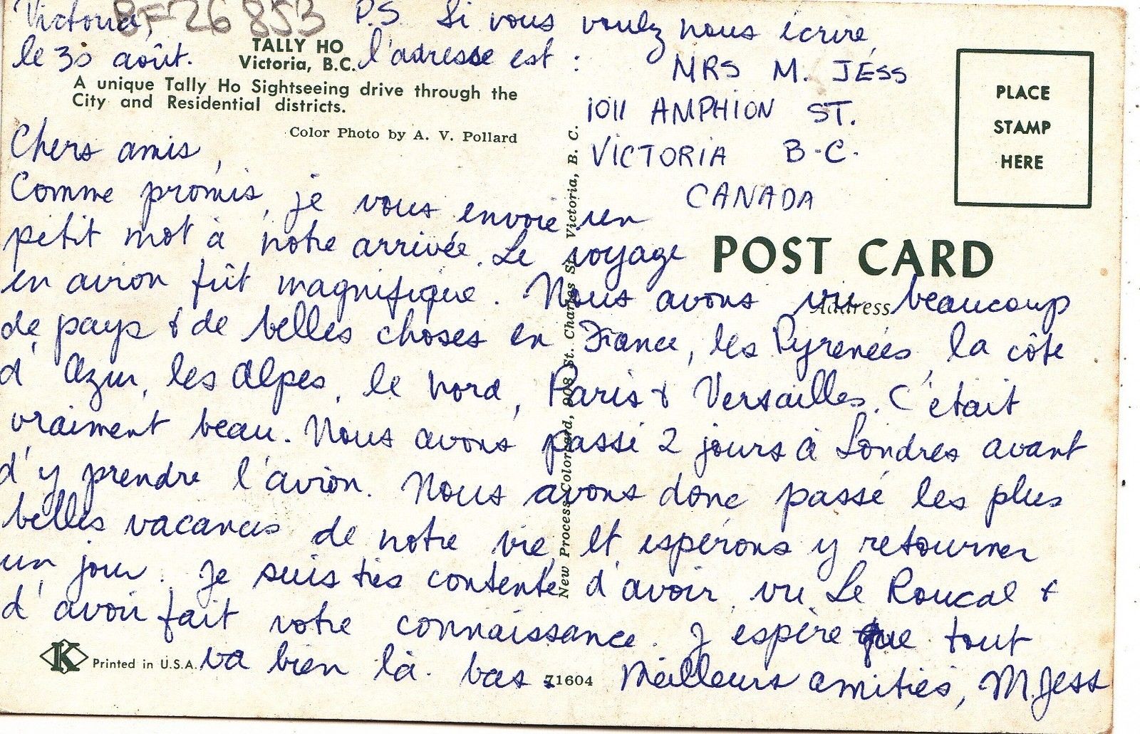 BF26853 tally HO Voctoria Brithish colombia canada front/back image