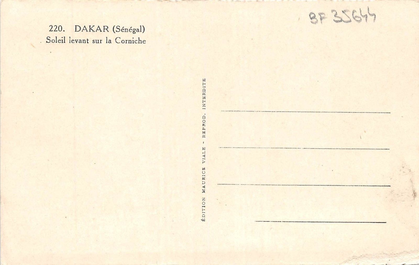 BF35644 soleil levant sur la corniche dakar senegal front/back scan