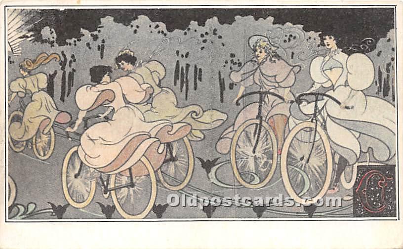 Bicycle Postcard Girls on bicycles