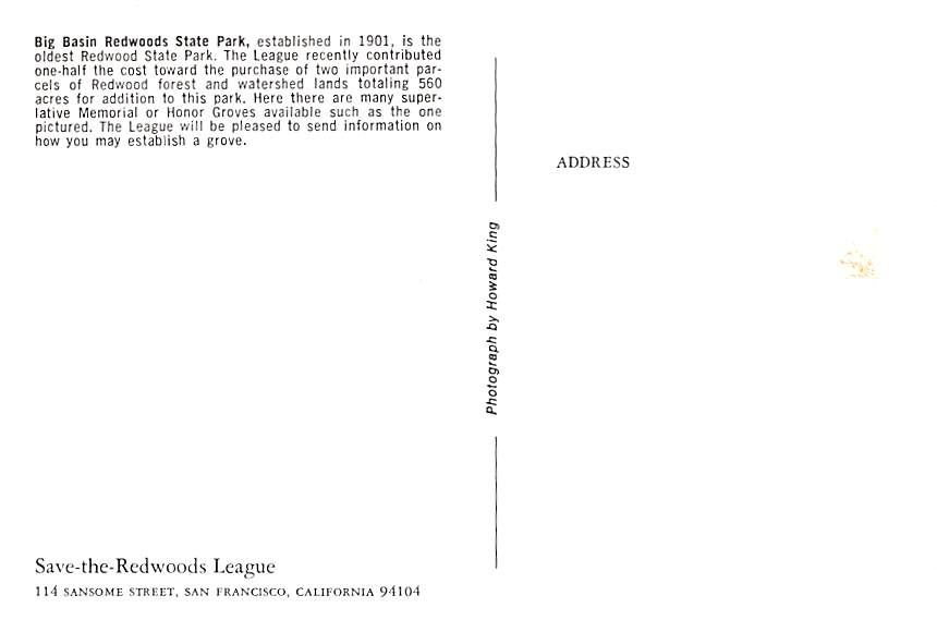 Big Basin Redwoods State Park - California Grade: 1 Category: Continental Size Postcard, Approx 4 in x 6 in (10 cm x 15.25 cm) Product Size: Continental size: 4X6 inches (10.5 cm x 15 cm) Grading Scale: Grade ... Read More