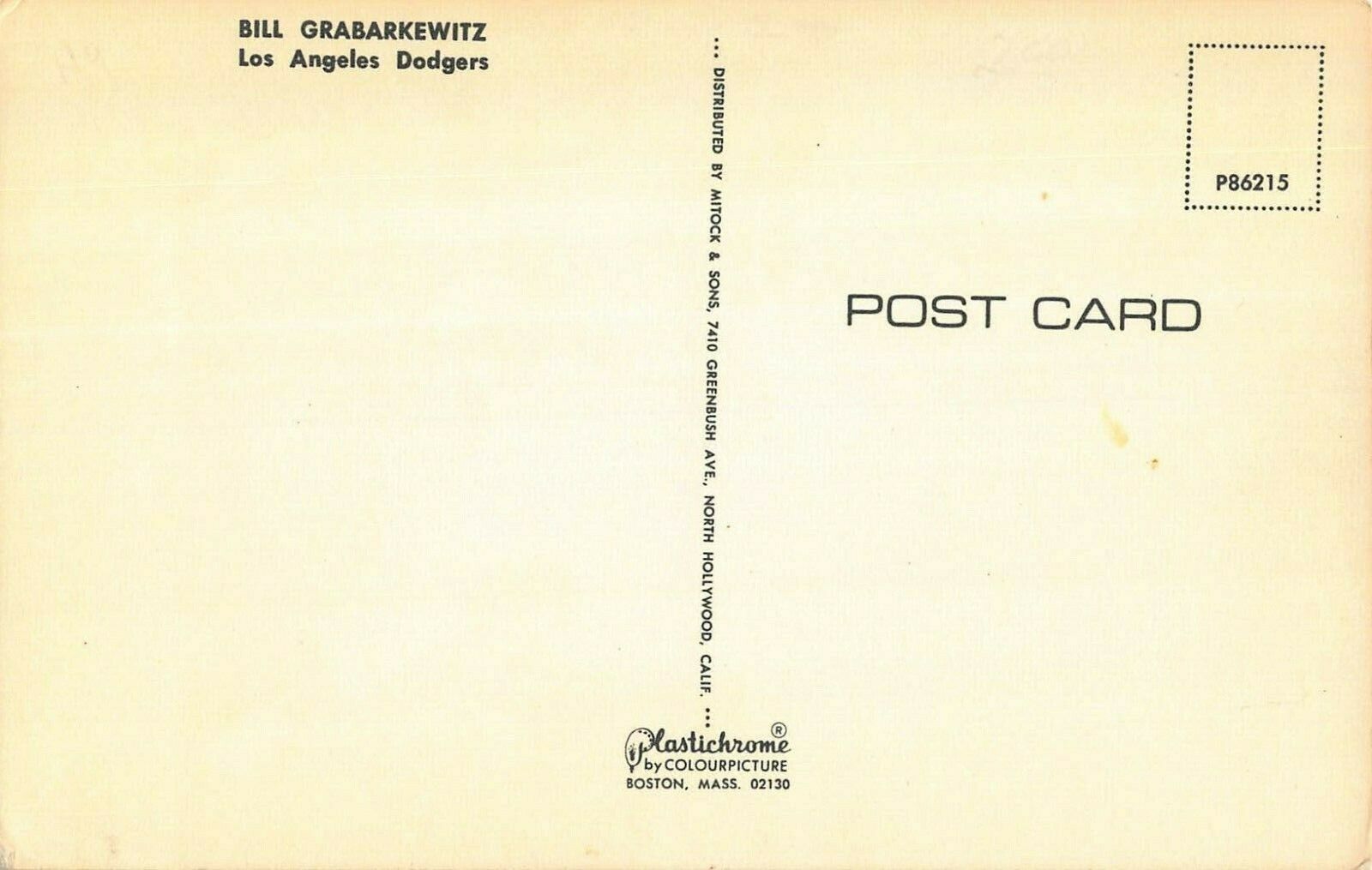 BILL GRABARKEWITZ ~ LOS ANGELES DODGERS BASEBALL POSTCARD
