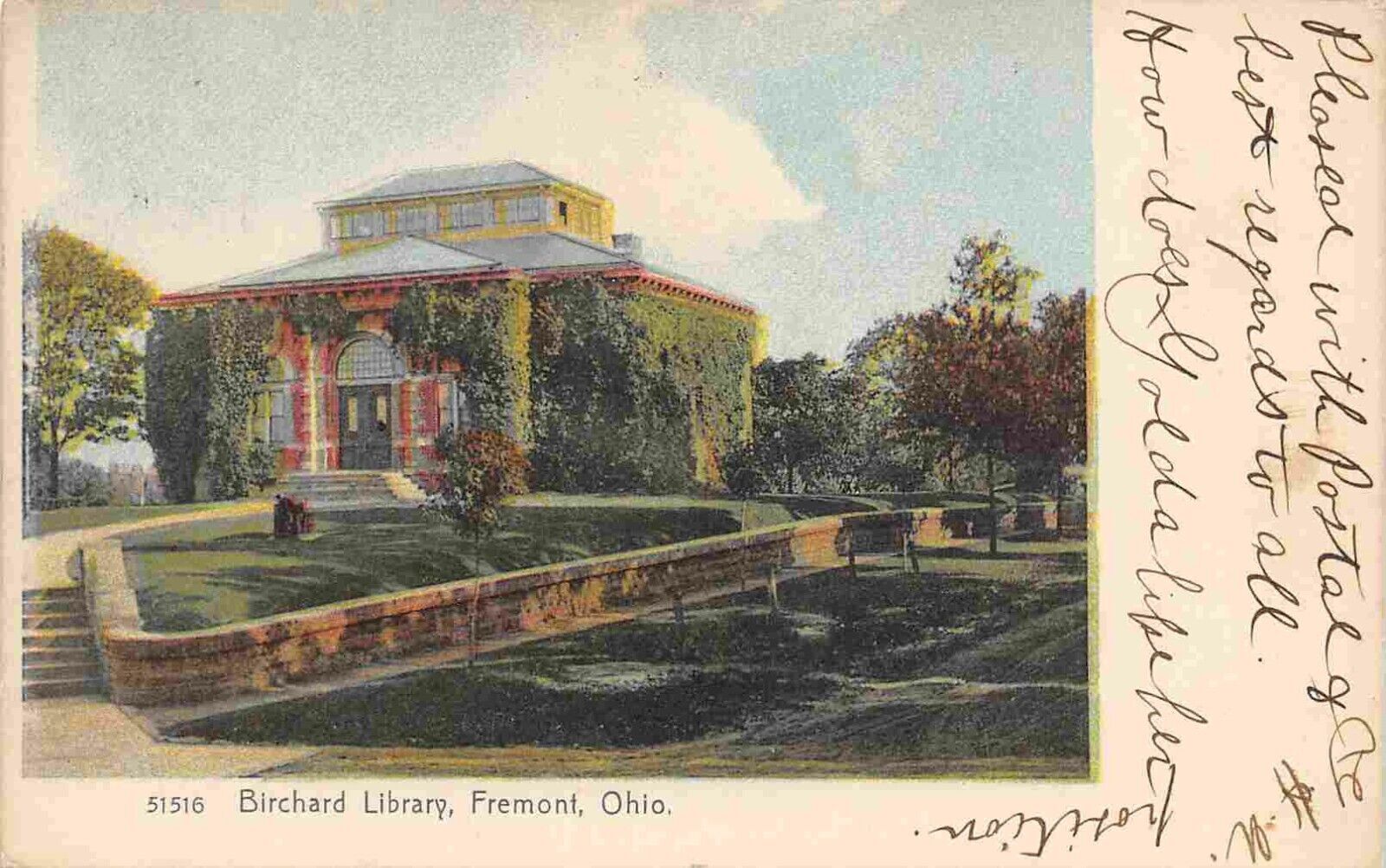 Birchard Library Fremont Ohio 1907 postcard
