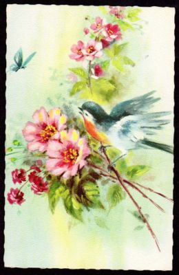 Bird Butterfly & Flowers Mainzer Art Postcard