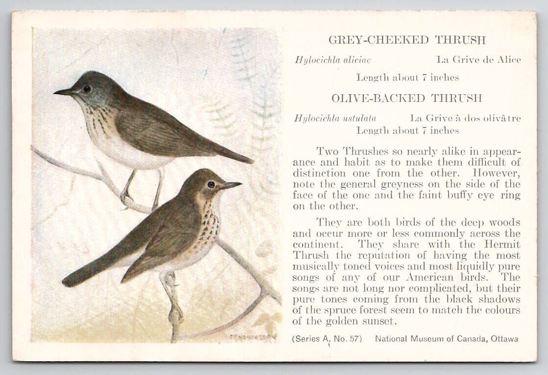 Birds Grey Cheeked Thrush and Olive Backed Thrush Postcard G24