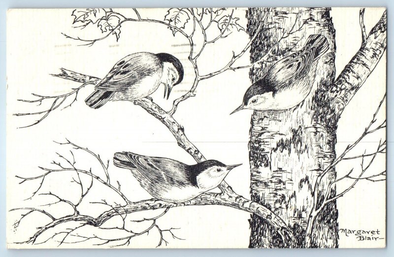 Birds On The Tree Margaret Blair Signed Artist Southampton PA Vintage Postcard