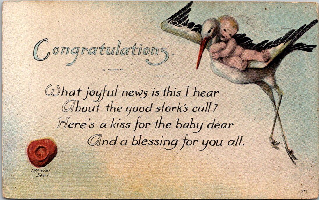 Birth Congratulations Baby Ridng On Stork's Back 1920