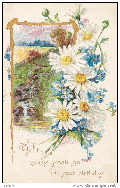 Birthday Daisy flower Greetings , PU-1907 : TUCK :: Postcard , 3.5 by 5.5" , Litho , VG+