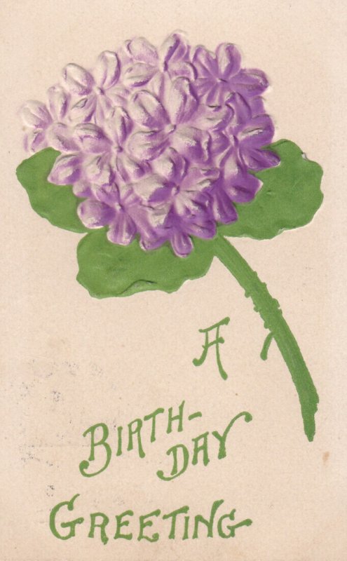 Birthday With Purple Flower 1908 Embossed