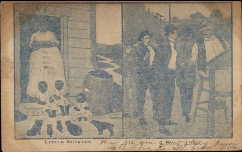 Black Americana Little Suckers & Big Suckers c1910 Comic Postcard