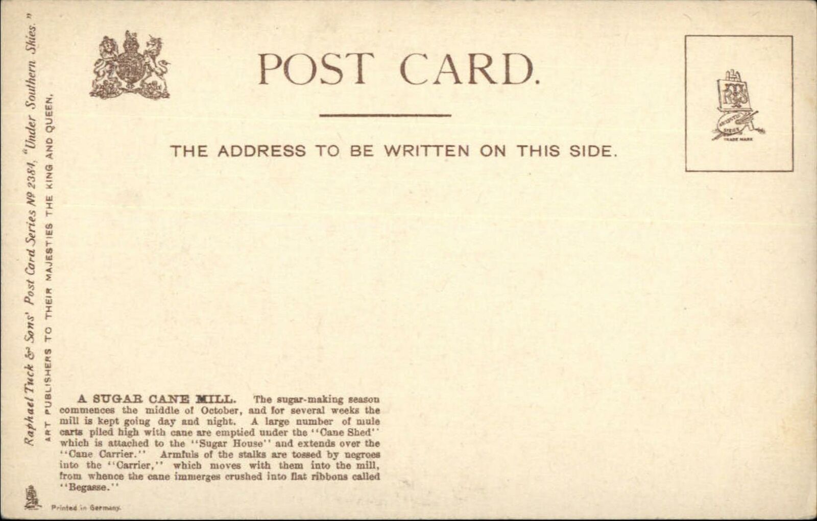 Black Americana TUCK #2384 Sugar Cane Mill c1910 Postcard