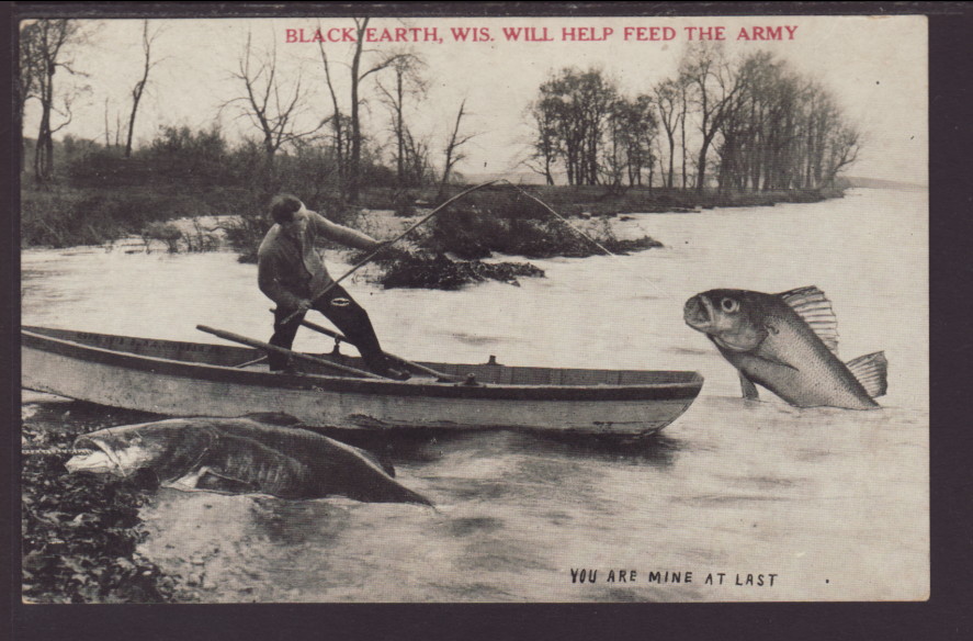 Black Eatrh,WI Will Help Feed.... Exaggerated Fish Postcard